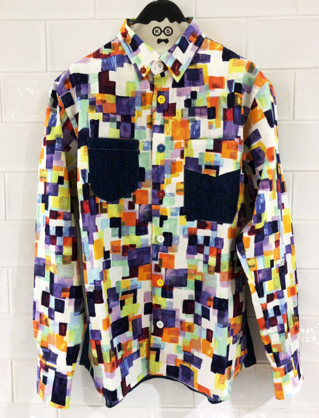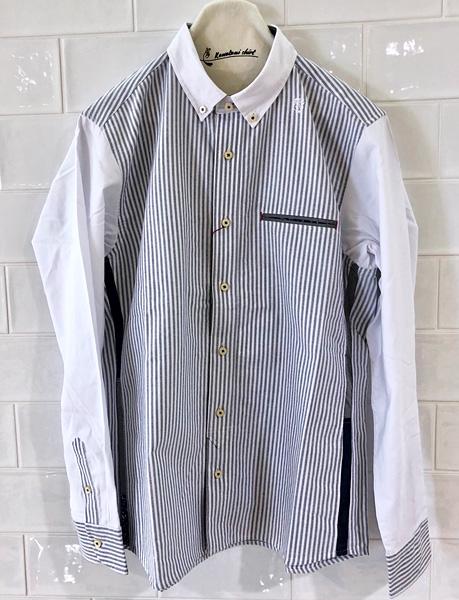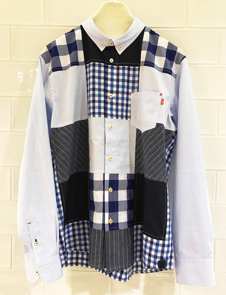 プレリュード「前奏曲」という名前のこのシャツは、河谷シャツ2018年春始まりの1枚。シンプルな色のパッチワークはスッキリとクリーンな印象に仕上がります。